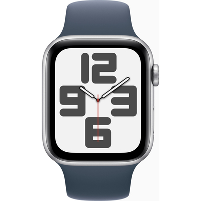 Apple Watch SE 2023, 44 мм, корпус из алюминия цвета «серебристый», спортивный ремешок цвета «грозовой синий»