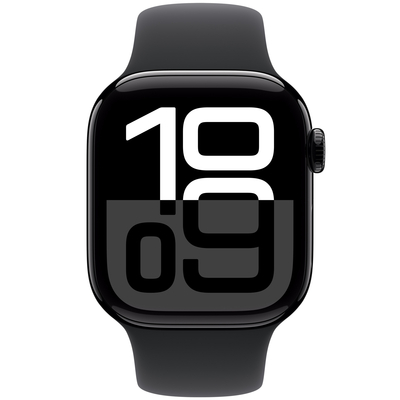 Apple Watch Series 10, 42 мм, корпус из алюминия цвета «чёрный глянец», спортивный ремешок «чёрный»