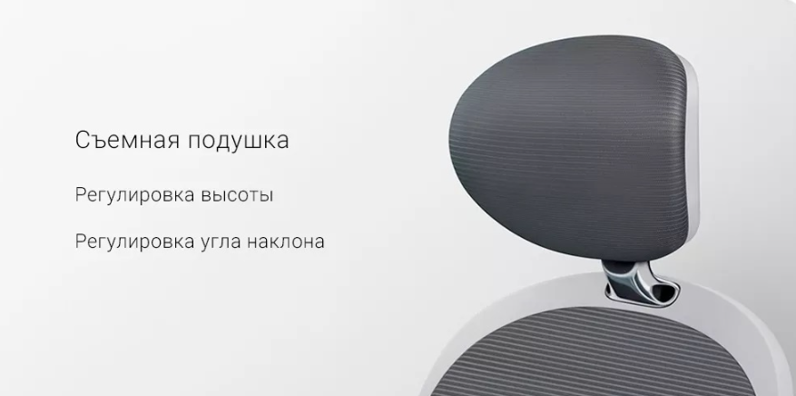 Съемная подушка настраивается под нужную высоту и угол наклона. Она поддерживает голову и шейные позвонки. Ее можно снять в любой момент.
