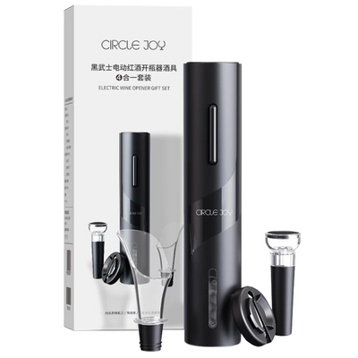 Набор для вина Circle Joy Black Samurai Wine Set 4 in 1 - набор аксессуаров для вина, которые помогут открыть бутылку и в полной мере раскрыть вкус любимого напитка. Процесс открытия бутылки занимает не более 8 секунд. В состав набора для вина входят 4 предмета: электрический штопор, вакуумная пробка, насадка-аэратор и нож для среза упаковки. Работает штопор от четырех батареек типа АА.