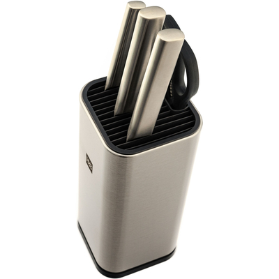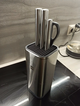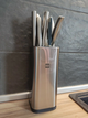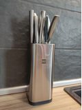 Подставка для ножей выполнена из нержавеющей стали и ABS-пластика. Ее можно мыть под проточной водой.