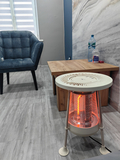 Обогреватель имеет современный дизайн, который подходит под любой интерьер. Конструкция устройства предполагает возможность его установки на полу, для чего используются соответствующие ножки. Крышку с ручкой для переноски можно снять, под ней располагается нагревательная пластина которая способна поддерживать температуру воды на уровне 60°C.