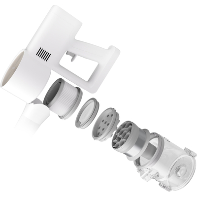 Одним из ключевых преимуществ Xiaomi Vacuum Cleaner G20 является вместительный пылесборник на 600 мл, который позволяет собирать большое количество мусора без необходимости частой очистки. Благодаря продуманной конструкции процесс обслуживания становится максимально простым и гигиеничным: пылесборник открывается автоматически одним нажатием кнопки, позволяя быстро и удобно удалить скопившуюся пыль и мусор. Моющиеся и многоразовые фильтры не только поддерживают эффективную работу пылесоса, но и помогают снизить расходы на расходные материалы, а также уменьшить воздействие на окружающую среду. Все элементы легко поддерживать в чистоте, что способствует долговечности устройства.