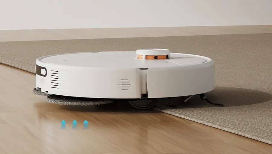Xiaomi Robot Vacuum H50 проявляет исключительную заботу о ваших интерьерных акцентах благодаря функции автоматического подъема чистящих насадок. При обнаружении коврового покрытия интеллектуальные датчики отдают команду мгновенно поднять швабры на высоту 10 мм, что полностью исключает риск намокания ворса и появления влажных следов. Одновременно с этим робот может автоматически активировать режим максимальной мощности всасывания для глубокого удаления пыли из основания ковра. Это позволяет проводить комплексную уборку всего дома за один сеанс, обеспечивая безупречную чистоту как на твердых полах, так и на деликатных текстильных покрытиях.