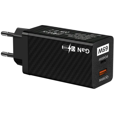 Характеристики Зарядное устройство GaN 65W USB + Type-C EU черное