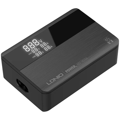 LDNIO A4808Q LED Display 65W Desktop Charger - сетевое зарядное устройство Type C с четырьмя зарядными портами и светодиодным дисплеем. Поддерживает PPS, Quick Charge 4.0+, Power Delivery 3.0 для быстрой зарядки MacBook Pro/Air, iPad, ноутбуков, iPhone 14, Samsung Galaxy S22, Steam Deck и другой USB-электроники