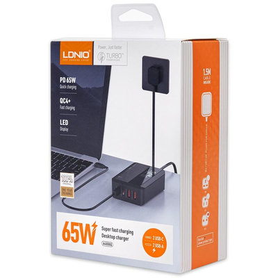Зарядное устройство LDNIO A4808Q совместимо с большинством устройств, которые заряжаются через Type-C и USB-A. Два порта Type-C с протоколами PD (Power Delivery) 3.0 и PPS/AFC/FCP поддерживают выходную мощность 65 Вт. Два порта USB-A с протоколами QC (Quick Charge) 4.0+ и FCP/SCP/AFC - 30 Вт. Мощности хватает для быстрой зарядки большинства гаджетов, таких как смартфоны, планшеты и ноутбуки