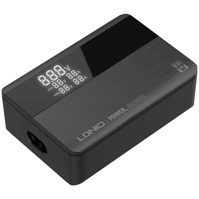 Технология GaN позволила ощутимо уменьшить габариты и вес зарядного устройства LDNIO A4809C. Благодаря этому транспортировка устройства не вызывает проблем, так как оно легко помещается в сумку или рюкзак. Встроенный цифровой дисплей комфортно и ясно информирует о текущих напряжении и токе на каждом разъёме